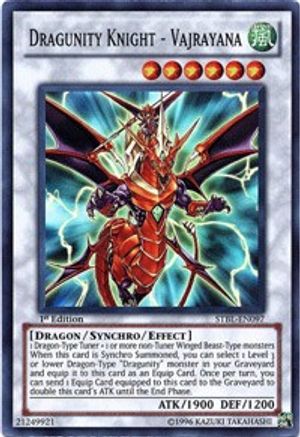 1 Syntoniseur de Type Dragon + 1 ou plusieurs monstres de Type Bête Ailée non-Syntoniseur. Lorsque cette carte est Invoquée par Synchronisation, vous pouvez sélectionner 1 monstre « Dragunité » de Type Dragon de Niveau 3 ou inférieur dans votre Cimetière et l'équiper à cette carte comme Carte d'Équipement. Une fois par tour, vous pouvez envoyer 1 Carte d'Équipement équipée à cette carte au Cimetière pour doubler son ATK jusqu'à la End Phase.