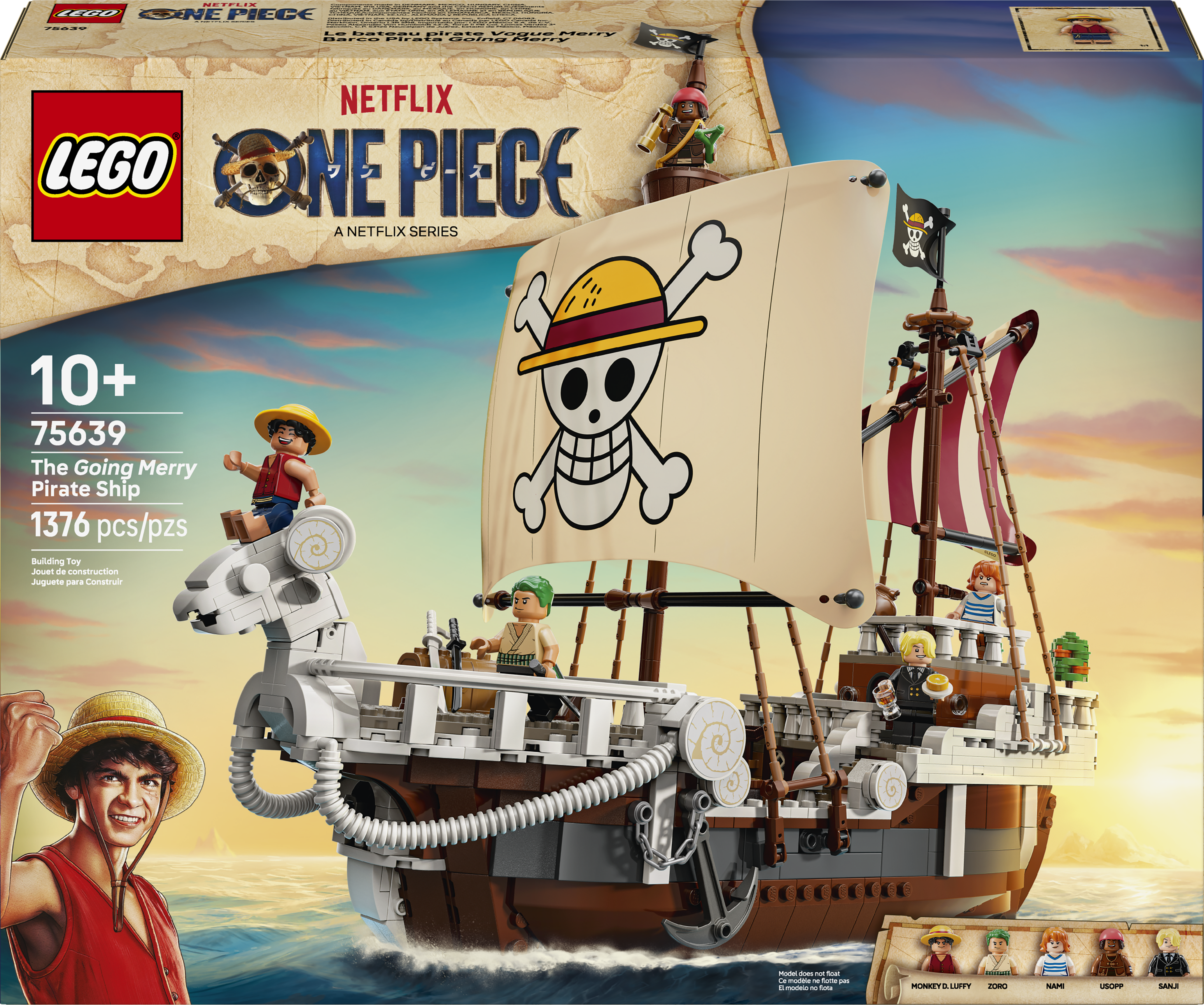 Includes minifigures of Monkey D. Luffy, Zoro, Nami, Usopp and Sanji