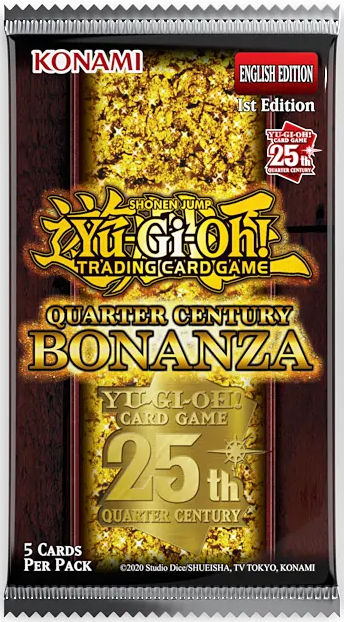 1.Quarter Century Bonanza packs are 5 cards per pack, like the first Rarity Collection, but we’ve replaced 1 Super Rare in every pack with a GUARANTEED luxury Secret Rare (Platinum or Quarter Century).